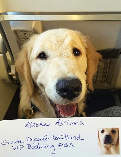 "I so appreciated the opportunity Alaska Airlines provided our Elroy, to train him for what will come very soon in his flight to his new home; it is invaluable training. We so appreciated the welcoming attitude and the professionalism and care that Alaska Airlines employees displayed. Starting with helping us through the TSA and check-in process, to showing us the plane and allowing our dogs to get comfortable in their positions in their seats, to delivering our wonderful goody bags. It was a great experience from beginning to end. We really appreciate Alaska Airlines and what they did for us!" – Nancy with guide dog puppy Elroy
